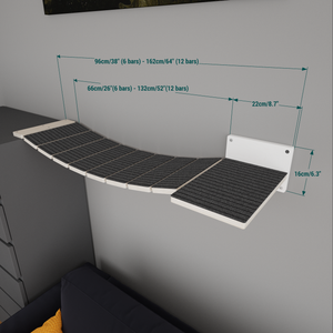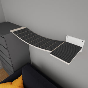 Extra secure and sturdy bridges for cats of all sizes, but specifically designed for large and heavier cats. Ideal for chonkier cats, or for large breeds such as the Maine Coon, Ragdoll, Savannah, Norwegian Forest Cat, and Highlander. The bridges have extra-wide slats that provide large cats with ample space to freely move around, pass each other, and turn around without issue. It can be attached to our BigCat and Giant shelves, and some of the standard Wally shelves that are deeper than 30cm/12".