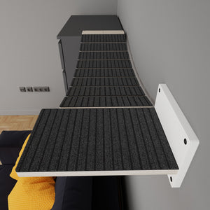 Our large and giant cat bridge with wide slats, the BigCat WideBridge in Solo - Giant Step mount version, comes with 1 end mount that can be attached to any piece of furniture, making it an easy extension to your existing setup. The other side is a Giant Step carpeted step, which is a standalone mount that attaches to your wall.