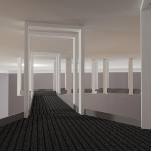In the showcased layout the ceiling area is around 3,3 x 2,5m / 130" x 94" and the wall elements are spread out at approximately 1m / 40" on each wall.